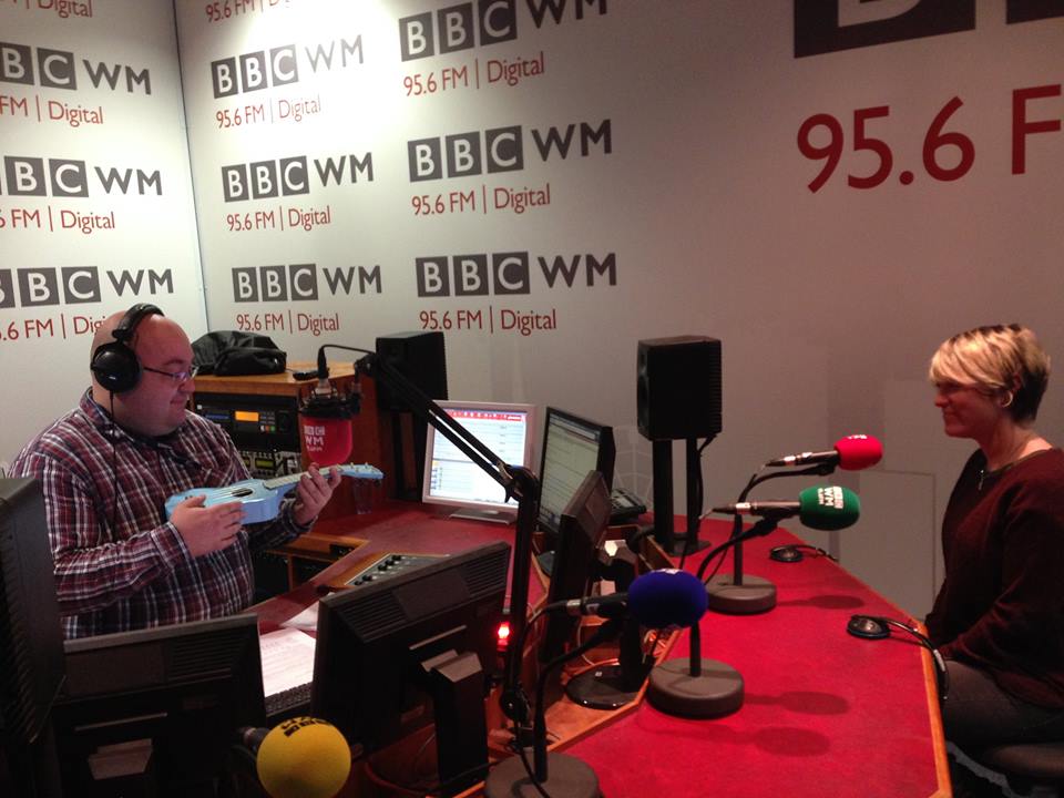 My job started a little earlier than usual this morning after being asked to come in to BBC WM to teach their presenter a bit of the ukulele and to talk about the popularity the ukulele has gained over the last few years. It was a fun experience and I was quite impressed at how quickly he picked it up whilst juggling the broadcasting! Hurrah!